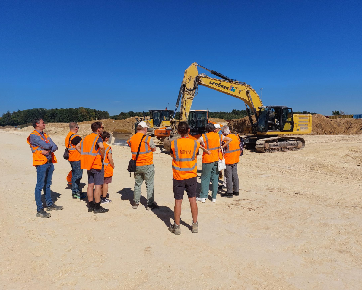 In Ulm-Dornstadt informierte das Projektteam am Samstag in zwei Zeitslots rund 30 interessierte Besucherinnen und Besucher direkt vor Ort über die Erweiterung des Terminals. In eineinhalb Stunden war einiges geboten: eine kurzweilige Einführung im Baubüro, der Gang über das Baufeld und ein Foto- & Selfie-Stopp an und in diversen großen Baumaschinen. Letzteres wurde dankenswerterweise von den hiesigen Baufirmen unterstützt. Sie haben eindrucksvoll das „Baggerballett“, das die Dimensionen und Dynamik des Bauvorhabens widerspiegelt, für alle großen und kleinen Beteiligten erlebbar gemacht. Die Erläuterungen des Projektteams zu den künftigen vier zusätzlichen Umschlaggleisen und den geplanten vollautomatisierten Portalkranen vermittelten anschaulich, wie die Maßnahmen zur Verdopplung der Terminalkapazität beitragen und damit einen wichtigen Beitrag zum Klimaschutz leisten.